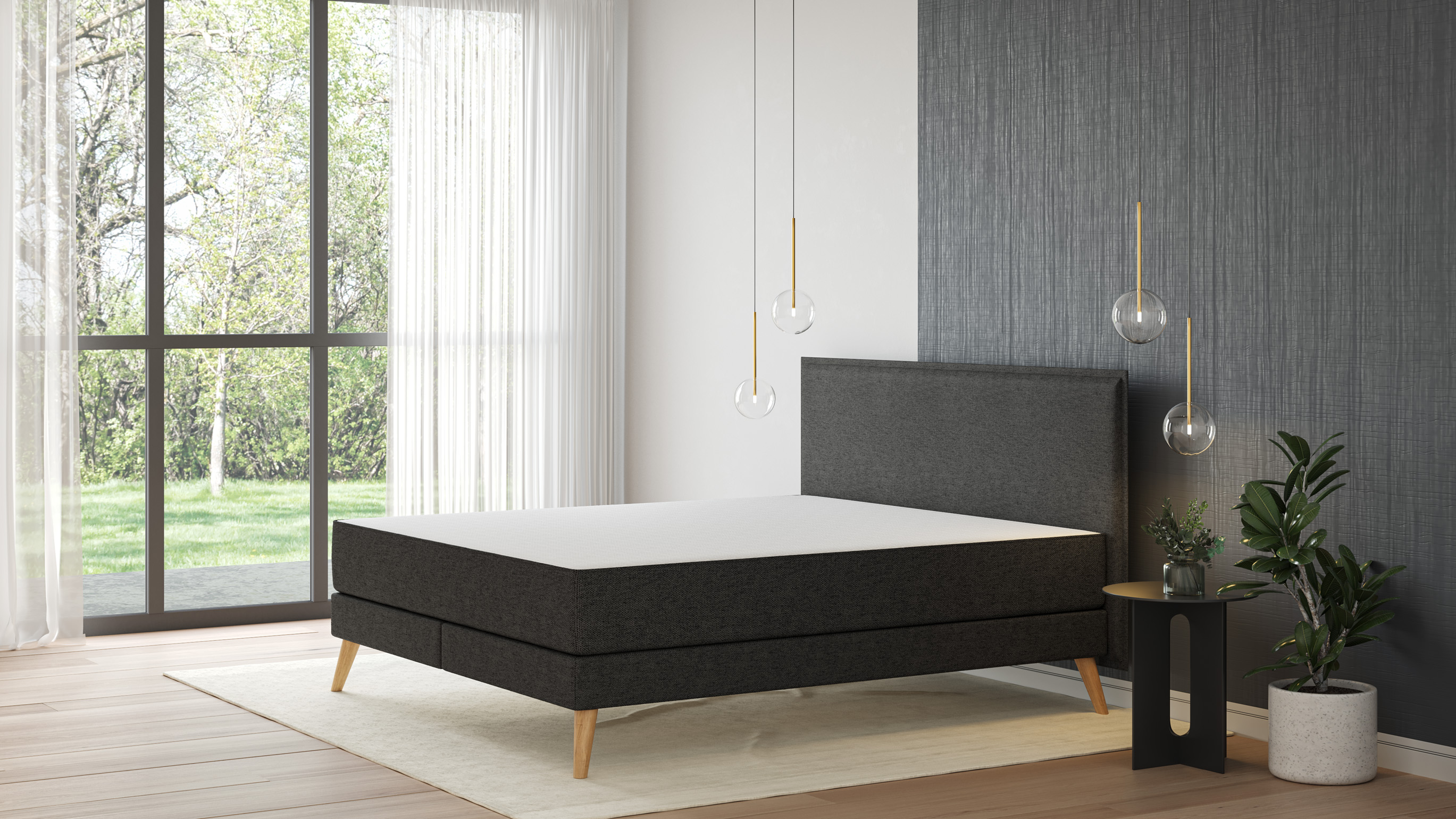 De stevige premium basis van grenenhout valt op door zijn elegante vorm en laat je kiezen uit verschillende designopties. Kies voor een rechthoofd- of afgerond hoofdbord. De waterafstotende stof is verkrijgbaar in diverse kleuren, en ook voor de poten zijn er meerdere mogelijkheden.